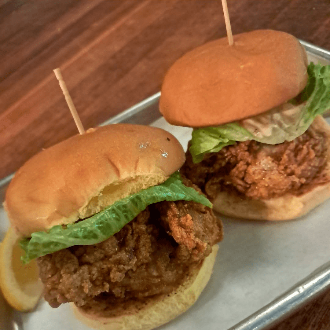 Not familiar with our Nashville chicken, this is the perfect way to try it! And if you have, then you know just how yummy this is!!! Two sliders per order or grab a six-pack and share.